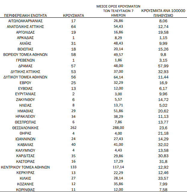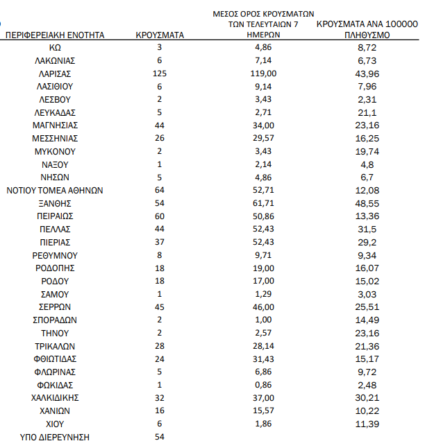 Τέλος, 54 κρούσματα βρίσκονται υπό διερεύνηση.