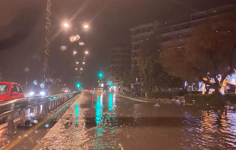 Από την ισχυρή βροχή, οι δρόμοι μετατράπηκαν σε ποτάμια με αποτέλεσμα, οι αστυνομικοί να κλείσουν τις δύο από τις τρεις λωρίδες στη Ποσειδώνος στο ρεύμα προς Πειραιά.