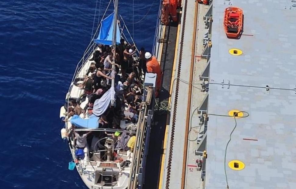 Αναμένεται η άφιξη του Παράκτιου Περιπολικού σκάφους του Λιμενικού με σκοπό την ασφαλή μετεπιβίβαση των αλλοδαπών και τη μεταφορά τους με ασφάλεια σε λιμένα.