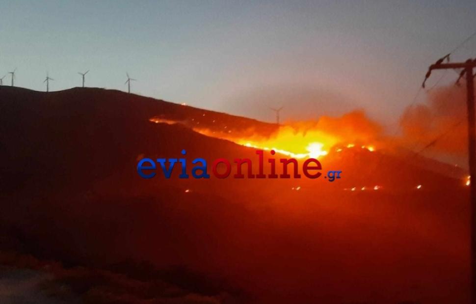 Νέος πύρινος εφιάλτης για τους κατοίκους της Καρύστου, καθώς το απόγευμα ξέσπασε νέα μεγάλη φωτιά στον Άγιο Βασίλειο Αντιάς που καίει σε μεγάλη έκταση και πλησιάζει τις ανεμογεννήτριες που βρίσκονται στην περιοχή.