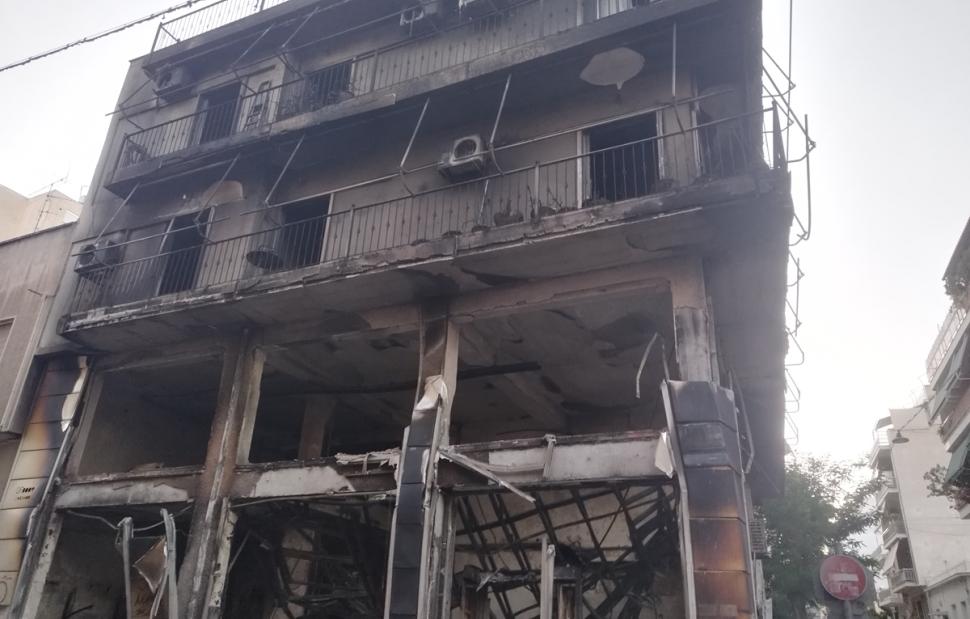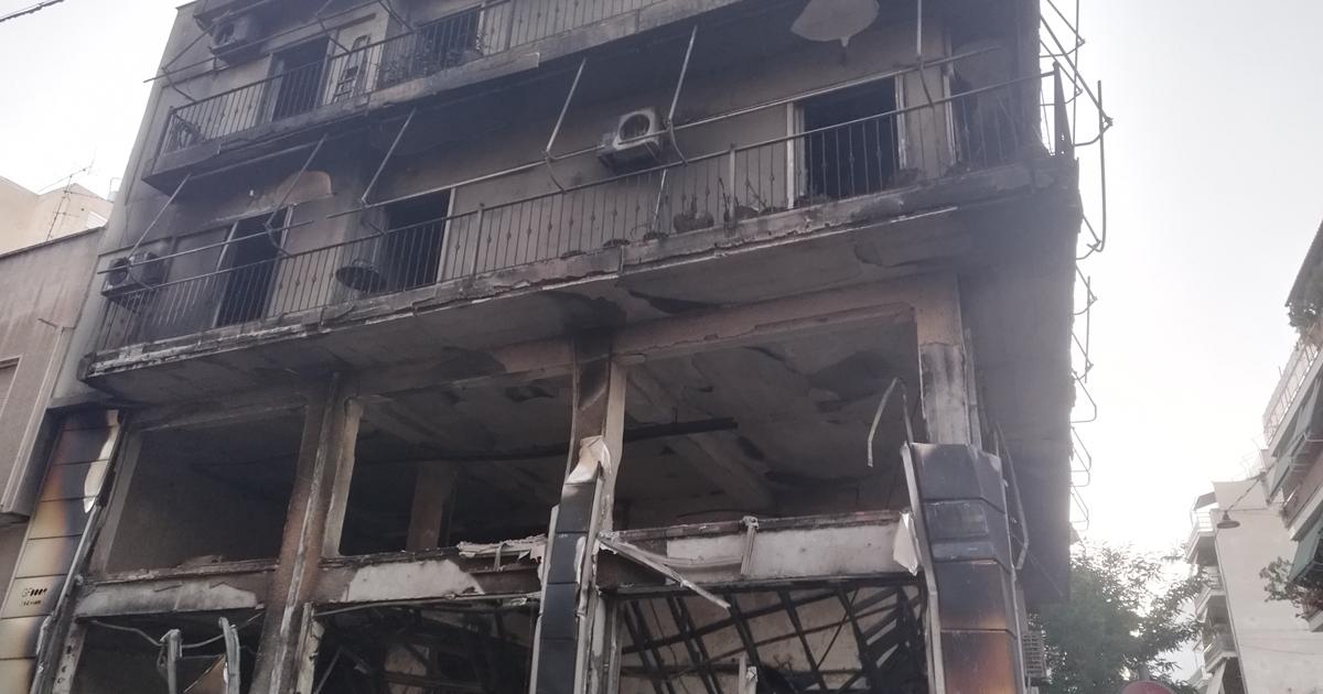 Από την ένταση της φωτιάς η πολυκατοικία υπέστη σοβαρές ζημιές όπως και τα διπλανά κτήρια αλλά και αυτοκίνητα που ήταν σταθμευμένα στο σημείο.
