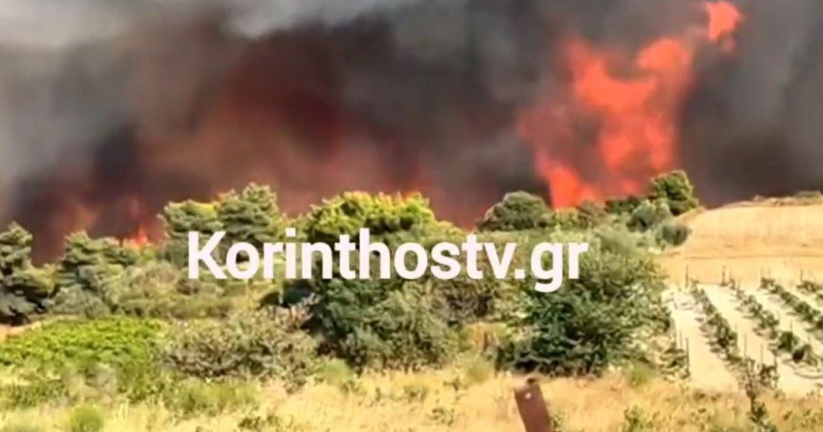 Η δασική πυρκαγιά στην Κορινθία εκδηλώθηκε την Πέμπτη στη Στιμάγκα, με τις πύρινες φλόγες να καίνε τα πάντα στο πέρασμά τους.