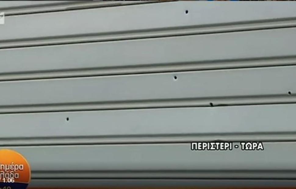 Μάλιστα, είναι εμφανείς στα πλάνα που μετέδωσε ο ΑΝΤ1, οι τρύπες που άνοιξαν από τις σφαίρες στο ρολό του κτιρίου.