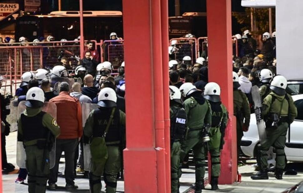 Την ίδια ώρα, διασωληνωμένος παραμένει ο αστυνομικός που τραυματίστηκε σοβαρά από ναυτική φωτοβολίδα που εκτόξευσε οπαδός. Ο 31χρονος δίνει μάχη για να κρατηθεί στη ζωή, ενώ οι Αρχές αναλύουν αντικείμενα και υλικό από κάμερες γύρω από το γήπεδο με στόχο τον άμεσο εντοπισμό του χούλιγκαν που εξαπέλυσε τη δολοφονική επίθεση.
