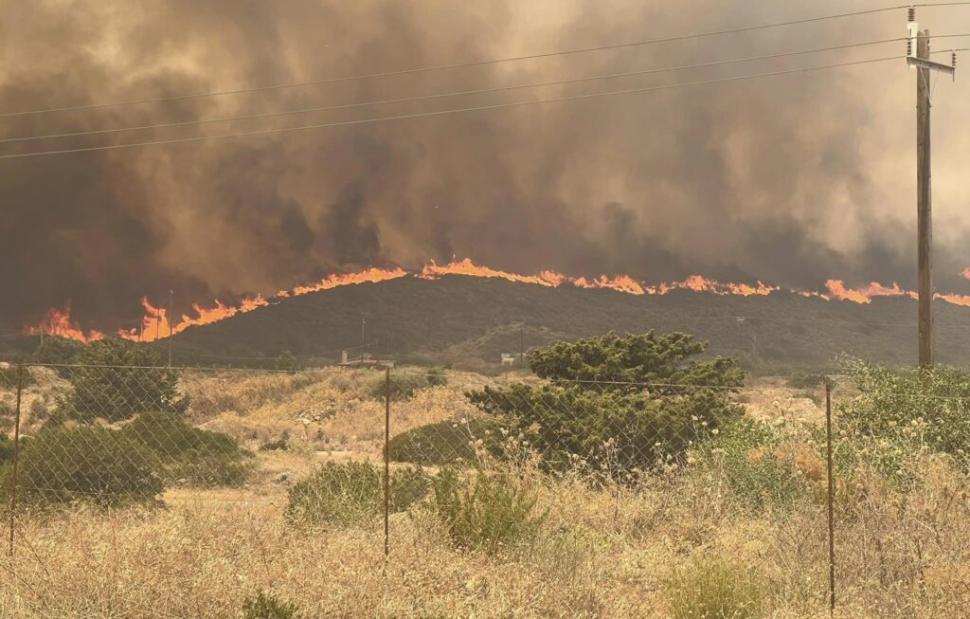 Δραματική είναι η εικόνα του πύρινου μετώπου στο Γεννάδι της Ρόδου, καθώς οι δυνατοί άνεμοι που πνέουν στην περιοχή μεταφέρουν τη φλόγα ολοένα και πιο κοντά στον οικισμό, ο οποίος έχει ήδη εκκενωθεί.