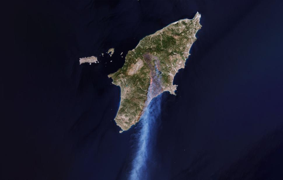 Το μέγεθος της καταστροφής από την μεγάλη φωτιά στη Ρόδο αποτύπωσε ο ευρωπαϊκός δορυφόρος Sentinel-2 που χρησιμοποιείται από το πρόγραμμα Copernicus για την καταγραφή των φυσικών καταστροφών στην Ευρώπη.