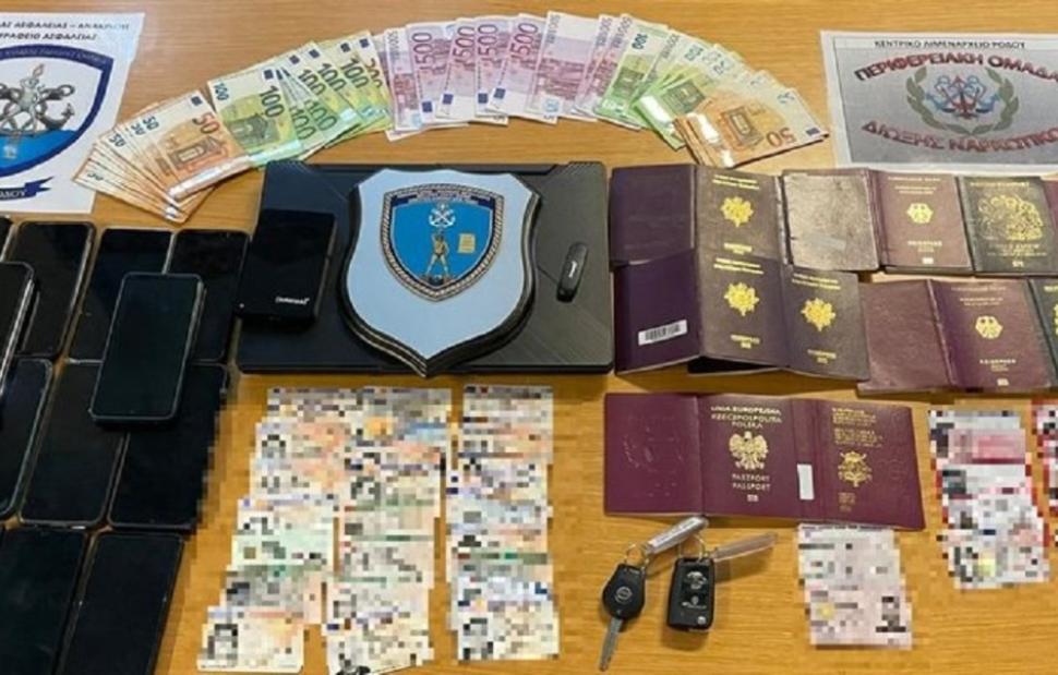 Συνολικά, κατά τις διενεργούμενες έρευνες εντοπίστηκαν και κατασχέθηκαν ένα Θ/Γ σκάφος, τρία Ι.Χ.Ε. οχήματα, είκοσι συσκευές κινητής τηλεφωνίας, ένας σκληρός εξωτερικός δίσκος, μία συσκευή αποθήκευσης αρχείων (usb stick), ένας φορητός υπολογιστής (laptop),το χρηματικό ποσό των επτά χιλιάδων ευρώ, τριάντα τέσσερις ταυτότητες άλλων χωρών, έντεκα ελληνικές κάρτες ασύλου αμφιβόλου γνησιότητας, μία άδεια διαμονής Ισπανίας αμφιβόλου γνησιότητας, ένα δίπλωμα οδήγησης Γαλλίας και δεκαέξι διαβατήρια διαφόρων χωρών αμφιβόλου γνησιότητας.