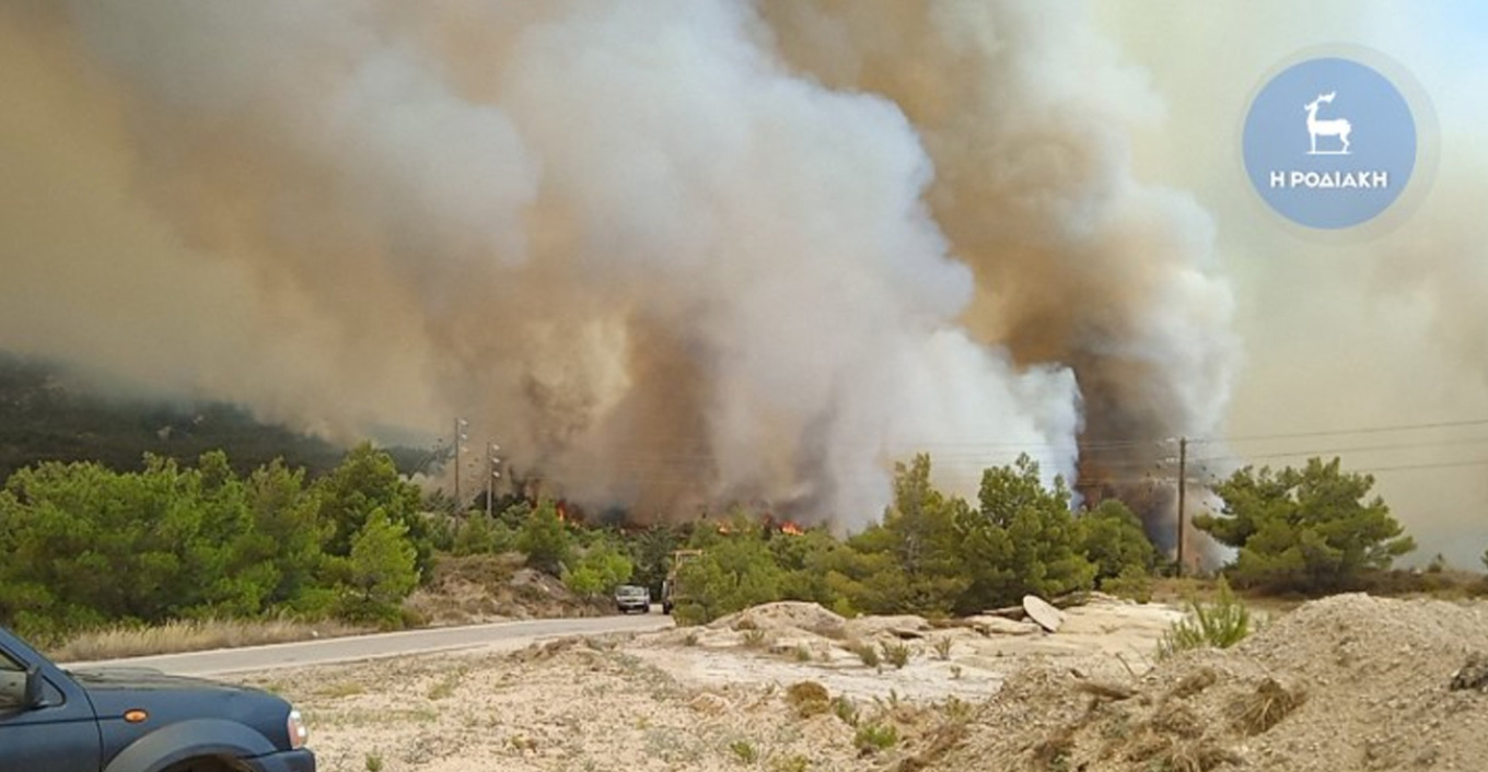 Ανεξέλεγκτη μαίνεται η μεγάλη πυρκαγιά στη Ρόδο. Τρία χωριά και ένα ξενοδοχείο έχουν εκκενωθεί, ενώ έκλεισε ο αρχαιολογικός χώρος της Καμείρου. Νωρίς το απόγευμα ξεκίνησαν ξανά οι ρίψεις νερού από τα πυροσβεστικά αεροπλάνα, οι οποίες είχαν διακοπεί προσωρινά λόγω του πυκνού καπνού που δυσχέραινε το έργο των πιλότων. Παράλληλα συνεχίζονται οι προσπάθειες των επίγειων πυροσβεστικών δυνάμεων και στα τέσσερα μέτωπα της φωτιάς στο νησί της Ρόδου.