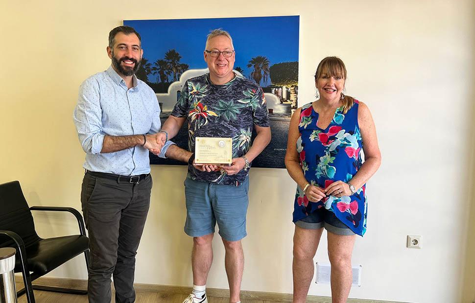 Πλατινένια πλακέτα, που αποτελεί την ανώτατη τιμητική διάκριση, απονεμήθηκε από τον Δήμο της Ρόδου σε ζευγάρι Βρετανών τουριστών που έχει επισκεφθεί το νησί πάνω από 100 φορές.