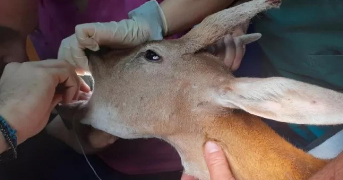 Το ελαφάκι, ένα νεαρό αρσενικό πλατώνι, είχε εντοπιστεί τραυματισμένο στο Κιοτάρι στον περίβολο του ξενοδοχείου Lindos Breeze Beach Hotel, και το περιέθαλψαν τα μέλη του συλλόγου Προστασίας και Περίθαλψης Άγριας Ζωής «ΑΝΙΜΑ» που βρέθηκαν στο νησί της Ρόδου. Το ελαφάκι, επειδή παρουσίαζε προβλήματα στα άκρα του κι επειδή η κατάστασή του ήταν σοβαρή κρίθηκε απαραίτητο να μεταφερθεί στην Αθήνα για να χειρουργηθεί, αναφέρει το rodiaki.gr.