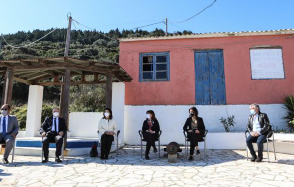 Τελευταίος σταθμός της κ. Σακελλαροπούλου ήταν η Ερεικούσα, όπου πρώτα επισκέφθηκε το εμβολιαστικό κέντρο του νησιού και αμέσως μετά μετέβη στο δημοτικό σχολείο, όπου την περίμεναν οι μοναδικοί τρεις μαθητές του και η δασκάλα τους.