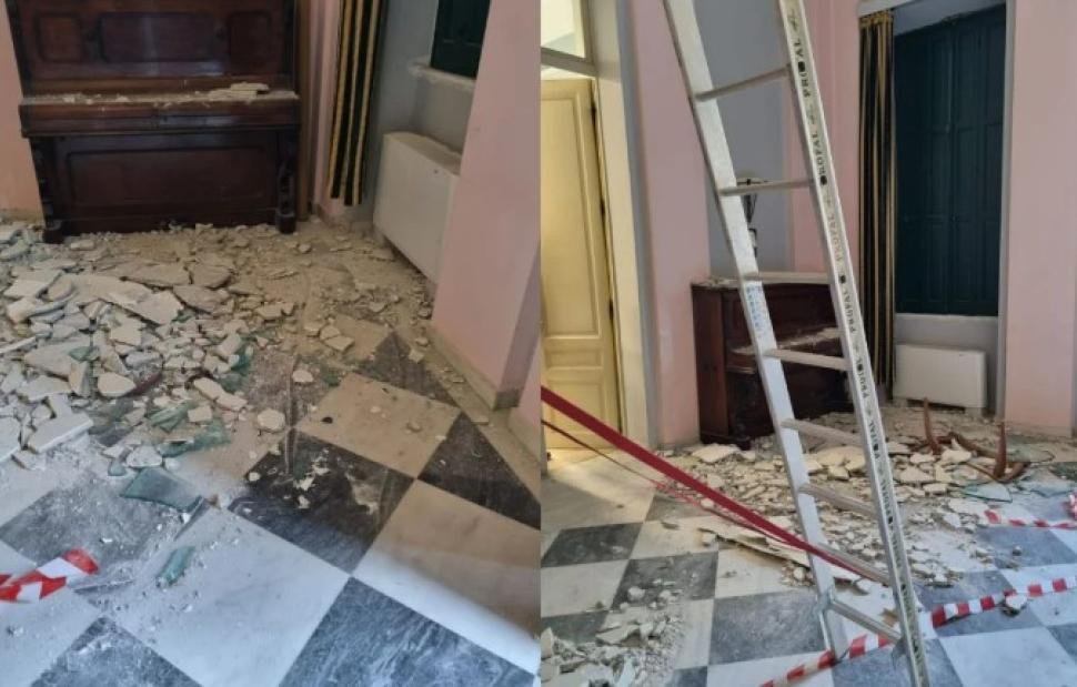 Σοκάρουν οι εικόνες από το δημαρχείο στην Σάμο που δημοσίευσε ο δήμαρχος Ανατολικής Σάμου, Γιώργος Στάντζος, όπου κατέρρευσε η οροφή μετά τους σεισμούς.