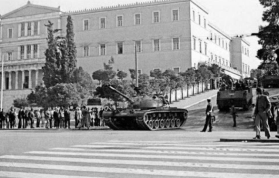 1967: Σαν σήμερα, Παρασκευή 21 Απριλίου 1967, ώρα 1:15’ μετά τα μεσάνυχτα τα τανκ του Ταξίαρχου Παττακού από το Γουδί κάνουν την εμφάνισή τους στο σταυροδρόμι των Αμπελοκήπων. 38 μέρες πριν τις εκλογές οι Γεώργιος Παπαδόπουλος, Στυλιανός Παττακός και Νικόλαος Μακαρέζος επισκέπτονται τον βασιλιά με συστατική επιστολή του αρχηγού του ΓΕΣ, Γρηγορίου Σπαντιδάκη, για να εξηγήσουν τους λόγους της «αναίμακτης επανάστασης: η απειλή κομμουνιστικής επανάστασης και η εξυγίανση της Ελλάδας από τους κομμουνιστές». Ο βασανιστής Ιωάννης Λαδάς αναλαμβάνει αμέσως δράση.