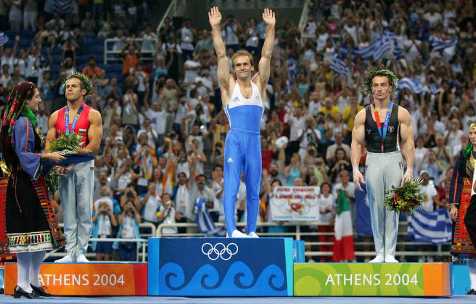 2004: Ο Δημοσθένης Ταμπάκος κατακτά το χρυσό μετάλλιο στους κρίκους, εκτελώντας εκπληκτικό πρόγραμμα και συγκεντρώνοντας 9.862 βαθμούς στους Ολυμπιακούς Αγώνες της Αθήνας. Στην κωπηλασία, ο Βασίλης Πολύμερος και ο Νίκος Σκιαθίτης κέρδισαν το χάλκινο μετάλλιο στα 2.000 μ. του διπλού σκιφ ελαφρών βαρών. Ο Αμερικανός Τζάστιν Γκάτλιν αναδείχθηκε χρυσός Ολυμπιονίκης στα 100 μέτρα των ανδρών, με χρόνο 9.85.