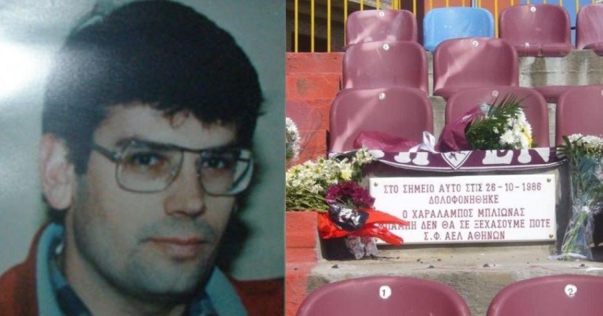 1986: Τραγωδία στο στάδιο Αλκαζάρ της Λάρισας. Στον αγώνα Λάρισα- ΠΑΟΚ, φωτοβολίδα που εκτοξεύει οπαδός του ΠΑΟΚ κόβει την καρωτίδα του 29χρονου δασκάλου Χαράλαμπου Μπλιώνα.