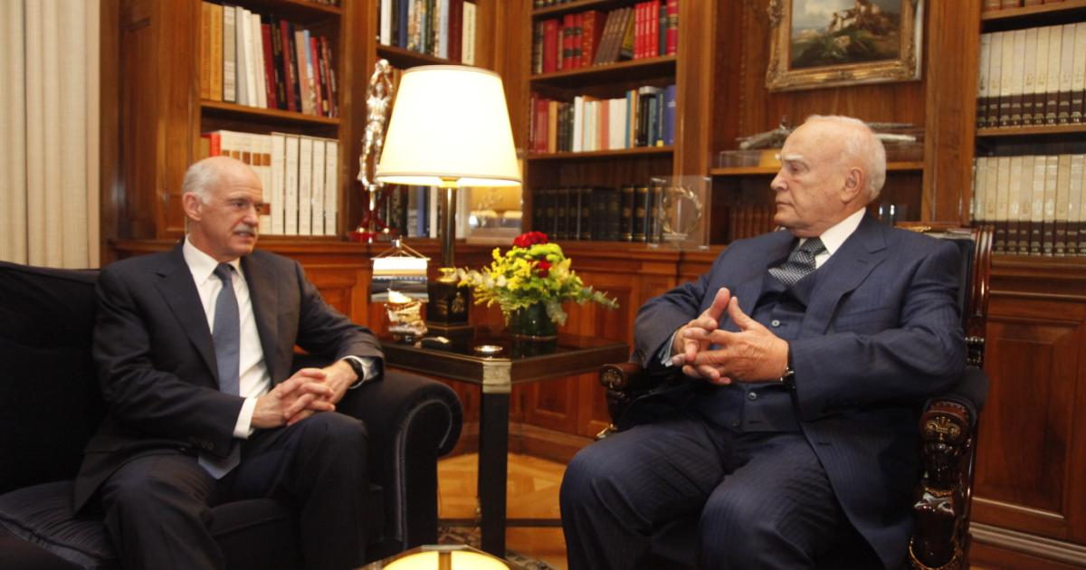 2009: Ο Γιώργος Παπανδρέου λαμβάνει εντολή σχηματισμού κυβέρνησης από τον Πρόεδρο της Δημοκρατίας, Κάρολο Παπούλια.