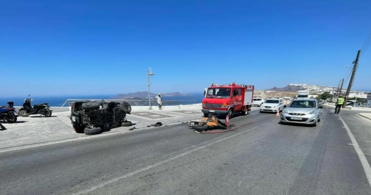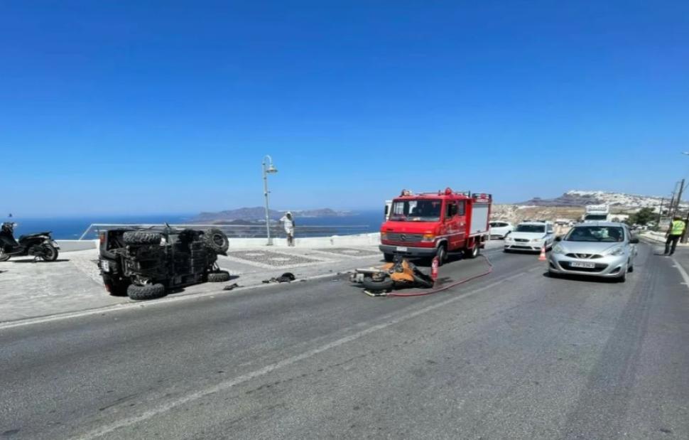 Σύμφωνα με την ιστοσελίδα cyclades24.gr, τουρίστας οδηγός οχήματος τύπου γουρούνα (buggy) έστριψε αριστερά στην ευθεία ταχείας κυκλοφορίας, για να βγάλει φωτογραφίες τη καλντερα με αποτέλεσμα να παρασύρει και να σκοτώσει ένα νεαρό οδηγό και να τραυματίσει αρκετά βαριά έναν ακόμα νέο παιδί.