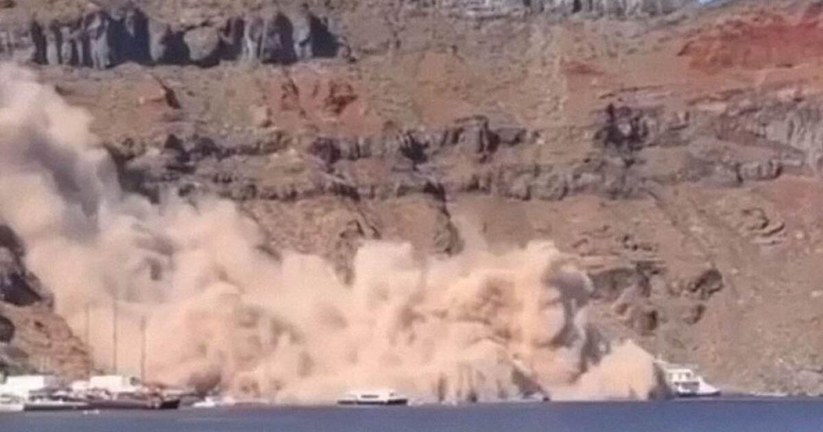 Κατολίσθηση σημειώθηκε στη Θηρασιά Σαντορίνης το Σάββατο το απόγευμα, δίπλα από το λιμάνι του Κόρφου και προκάλεσε ένα τεράστιο σύννεφο σκόνης χωρίς ευτυχώς να υπάρξουν τραυματισμοί, παρά μόνο κάποιες υλικές ζημιές.