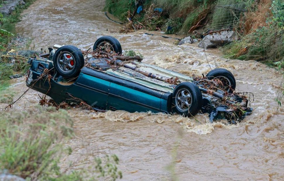 Στην παραλία Αγίου Ισιδώρου στο Πλωμάρι το ποτάμι κατέβασε μεγάλο όγκο νερού με αποτέλεσμα να παρασυρθεί ένα αυτοκίνητο που ήταν παρκαρισμένο στην περιοχή αλλά και ξαπλώστρες και ομπρέλες της παρακείμενης επιχείρησης.