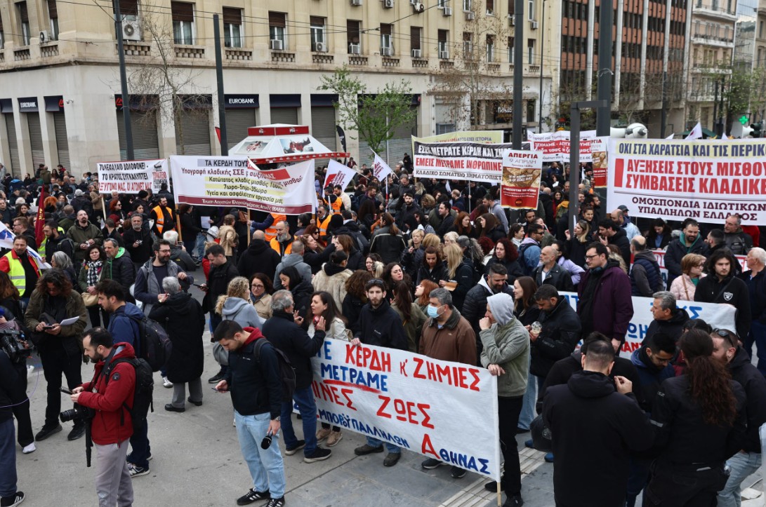 Με ομιλίες και κεντρικό σύνθημα «Συνεχίζουμε τον αγώνα. Συλλογικές Συμβάσεις και αυξήσεις στους μισθούς. Δουλειά με δικαιώματα και ζωή με αξιοπρέπεια. Ή τα κέρδη τους ή οι ζωές μας» πραγματοποιήθηκε η απεργιακή συγκέντρωση Εργατικών Κέντρων, Ομοσπονδιών και Συνδικάτων στο Σύνταγμα.