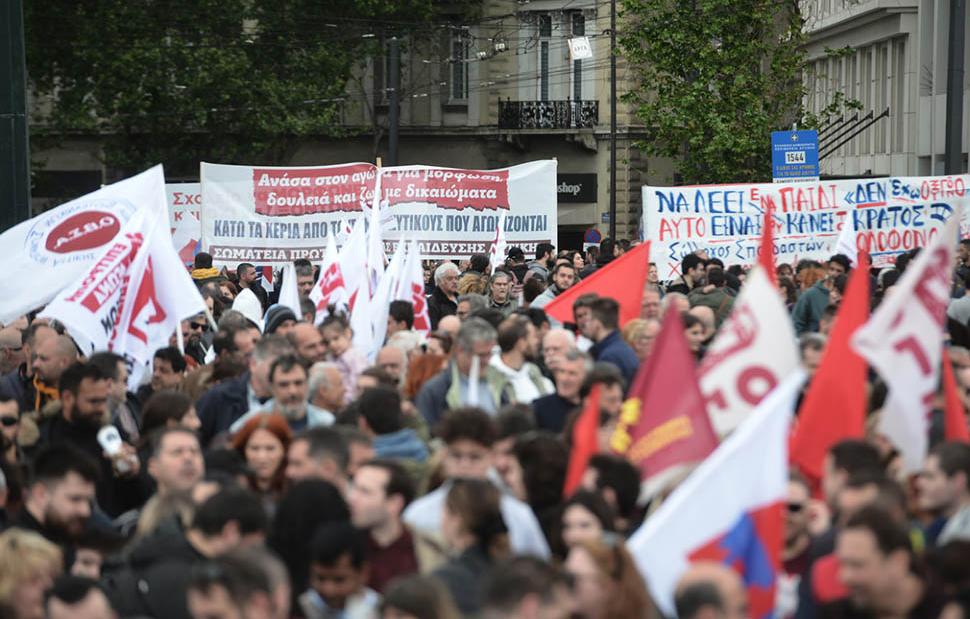Με χαιρετισμούς και ομιλίες, έγινε η μεγάλη απεργιακή συγκέντρωση της Εργατικής Πρωτομαγιάς στο Σύνταγμα που διοργανώνει το ΠΑΜΕ μαζί με εργατικά συνδικάτα και Ομοσπονδίες. Το σύνθημα που δέσποζε στην συγκέντρωση είναι «1η Μάη – Ή τα κέρδη τους ή οι ζωές μας – Ελπίδα η πάλη των λαών στον δρόμο της ανατροπής».