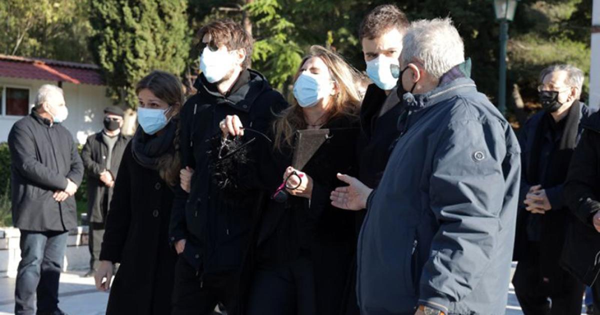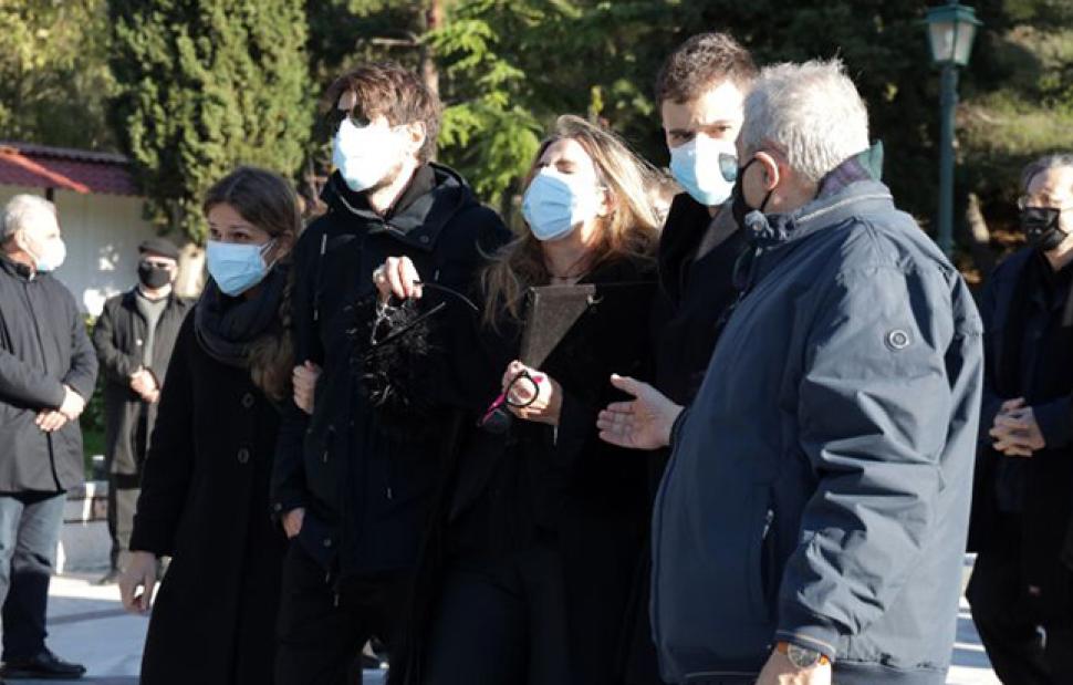 Η σύζυγός του, Μίνα Παπαθεοδώρου-Βαλυράκη, μαζί με τους δύο γιους τους είπαν το τελευταίο «αντίο» στον Σήφη Βαλυράκη.