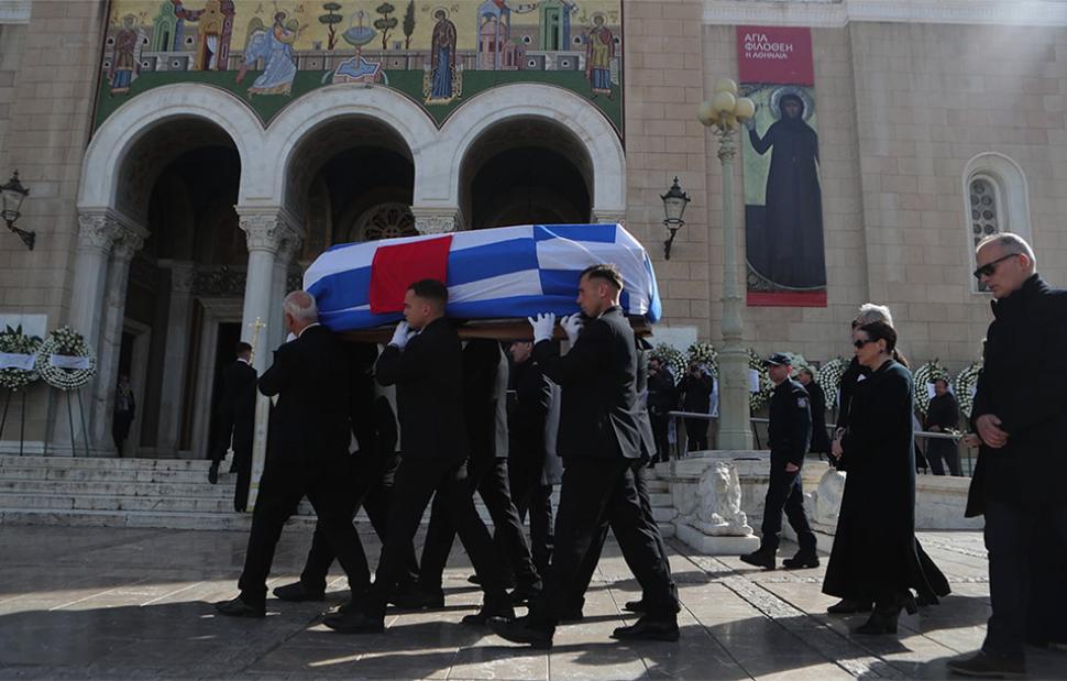 Στην εξόδιο ακολουθία παρούσα ήταν και η υπουργός Πολιτισμού, Λίνα Μενδώνη, αλλά και η πρώην Πρόεδρος της Δημοκρατίας Κατερίνα Σακκελαροπούλου.