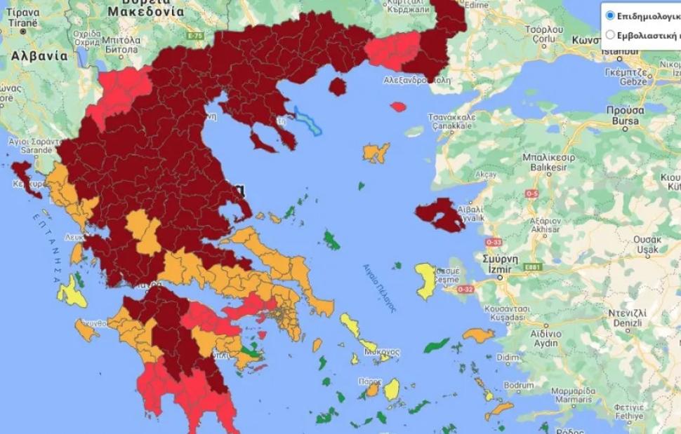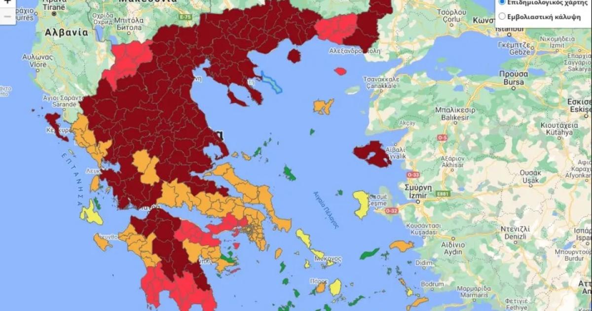 Δύο ακόμη περιοχές της χώρας μπαίνουν αυτή την εβδομάδα στο βαθύ κόκκινο (επίπεδο 5) του Επιδημιολογικού Χάρτη.