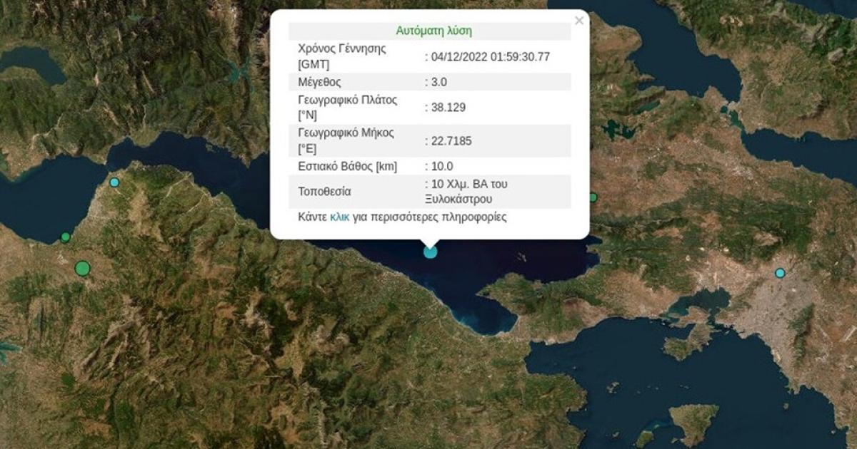 Σεισμική δόνηση 3 Ρίχτερ σημειώθηκε στις 03:59, τα ξημερώματα της Κυριακής, 11 χιλιόμετρα βορειοανατολικά από το Ξυλόκαστρο.