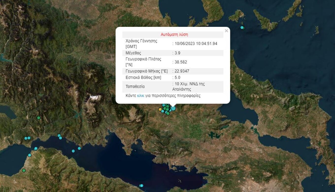 Μετά τον ισχυρό σεισμό των 4,8 βαθμών της κλίμακας Ρίχτερ που σημειώθηκε την Πέμπτη (8/6) λίγα λεπτά μετά τις 15:30 το μεσημέρι με επίκεντρο 13 χιλιόμετρα νοτιοδυτικά της Αταλάντης και εστιακό βάθος 13 χιλιόμετρα, ο οποίος έγινε αισθητός και σε μεγάλο μέρος της Αττικής, έχουν καταγραφεί πάνω από 30 μετασεισμοί μικρού μεγέθους που δεν ξεπέρασαν τα 2,8 Ρίχτερ, ενώ τα ξημερώματα στο ίδιο σημείο σημειώθηκε σεισμική δόνηση μεγέθους 3,1 βαθμών της κλίμακας Ρίχτερ.