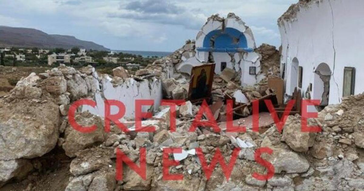 Το εκκλησάκι του Αγίου Νικολάου στον Ξηροκαμπο Σητείας κατέρρευσε από τον σεισμό των 6,3 Ρίχτερ.