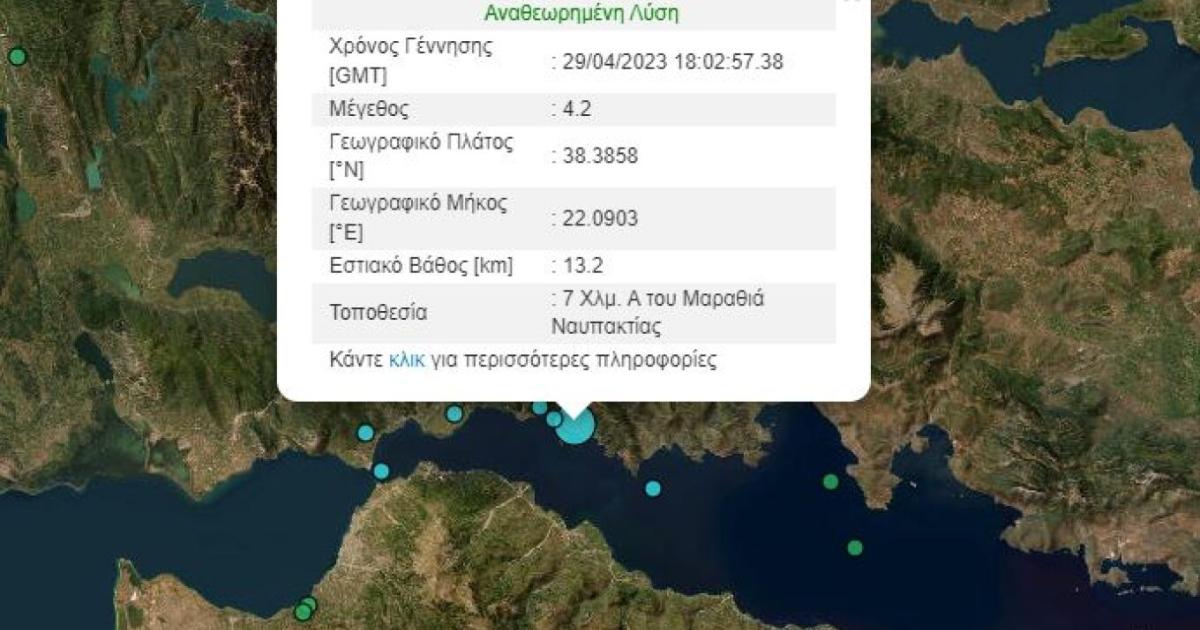 Σεισμός μεγέθους 4,2 Ρίχτερ σημειώθηκε το βράδυ του Σαββάτου στη Ναυπακτία.