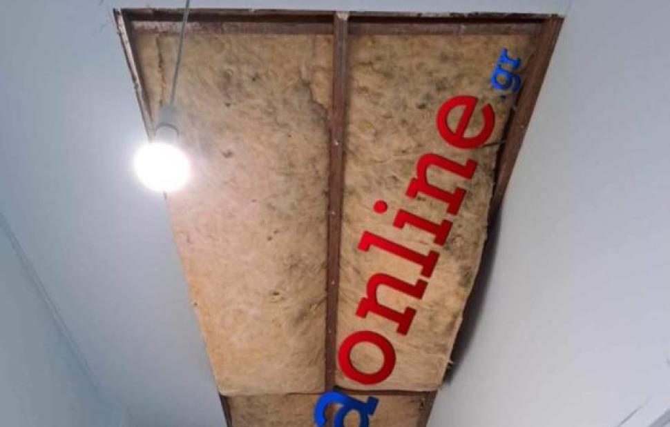 Όπως φαίνεται στην αποκλειστική φωτογραφία του eviaonline τουλάχιστον τρία μέτρα από την γυψοσανίδα ξηλώθηκαν ενώ τα συντρίμμια έπεσαν στο πάτωμα.