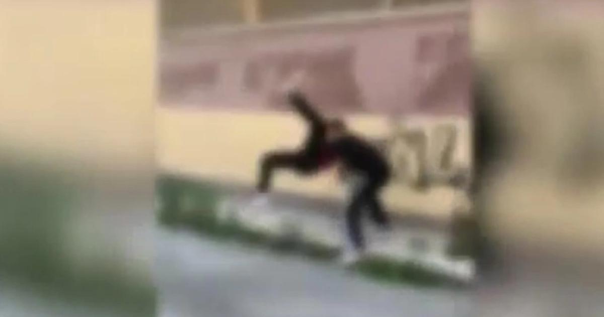 Στο βίντεο φαίνονται οι δύο μαθητές να ανταλλάσσουν γροθιές - για άγνωστο λόγο - ενώ κάποια στιγμή ο ένας εξ αυτών ρίχνει τον άλλο με την πλάτη στο έδαφος.