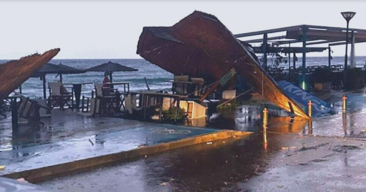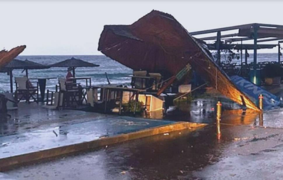 Το αποτέλεσμα ήταν να προκληθούν ζημιές σε beach bar, καταστήματα εστίασης και αυτοκίνητα, ενώ έπεσαν δέντρα και διεκόπη η ηλεκτροδότηση. Υπάρχουν αναφορές και για έναν τραυματία από ξύλινη ομπρέλα η οποία ξηλώθηκε από τους ισχυρές ριπές ανέμου.