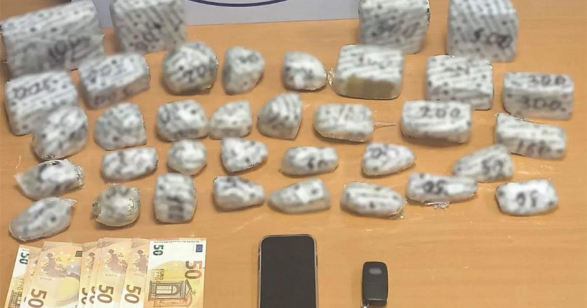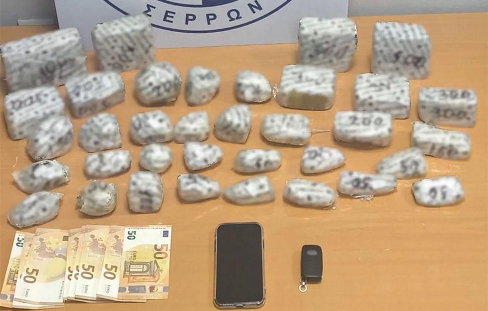 Στην κατοχή του βρέθηκαν αρχικά εννέα συσκευασίες με 743 γραμμάρια ηρωίνης, ενώ σε έρευνα που ακολούθησε στο αυτοκίνητό του, με τη συνδρομή του αστυνομικού σκύλου ανίχνευσης ναρκωτικών «Roxy», εντοπίστηκαν άλλες 26 συσκευασίες με 5,5 κιλά της ίδιας ναρκωτικής ουσίας.