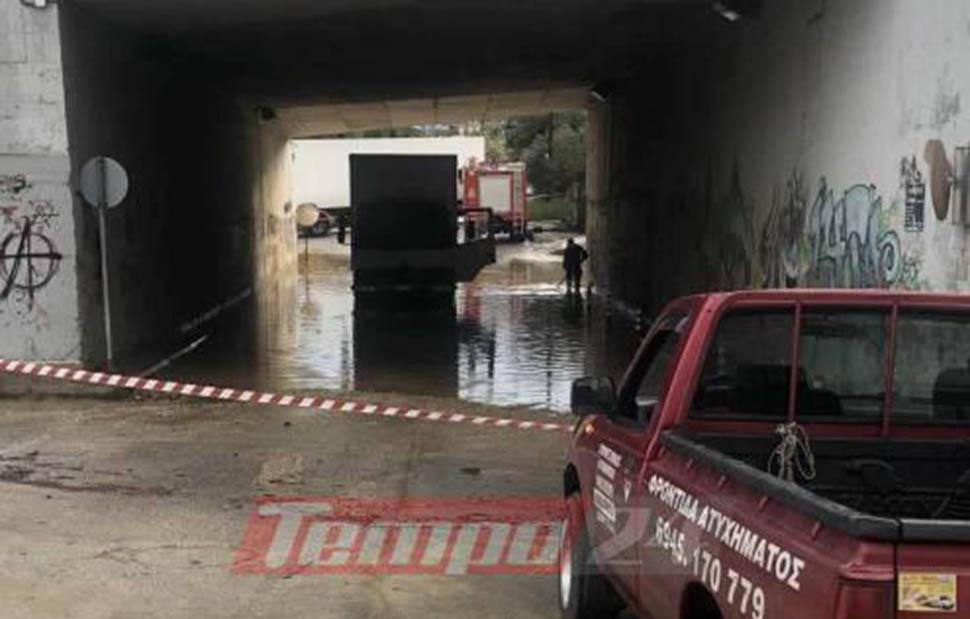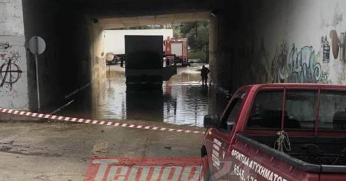 Ένα φορτηγάκι εγκλωβίστηκε κάτω από τη γέφυρα στην οδό Αγίου Κωνσταντίνου στην περιοχή του Μιντιλογλίου. Ο δρόμος είναι κλειστός, καθώς εκτελούνται εργασίες για την άντληση των υδάτων.