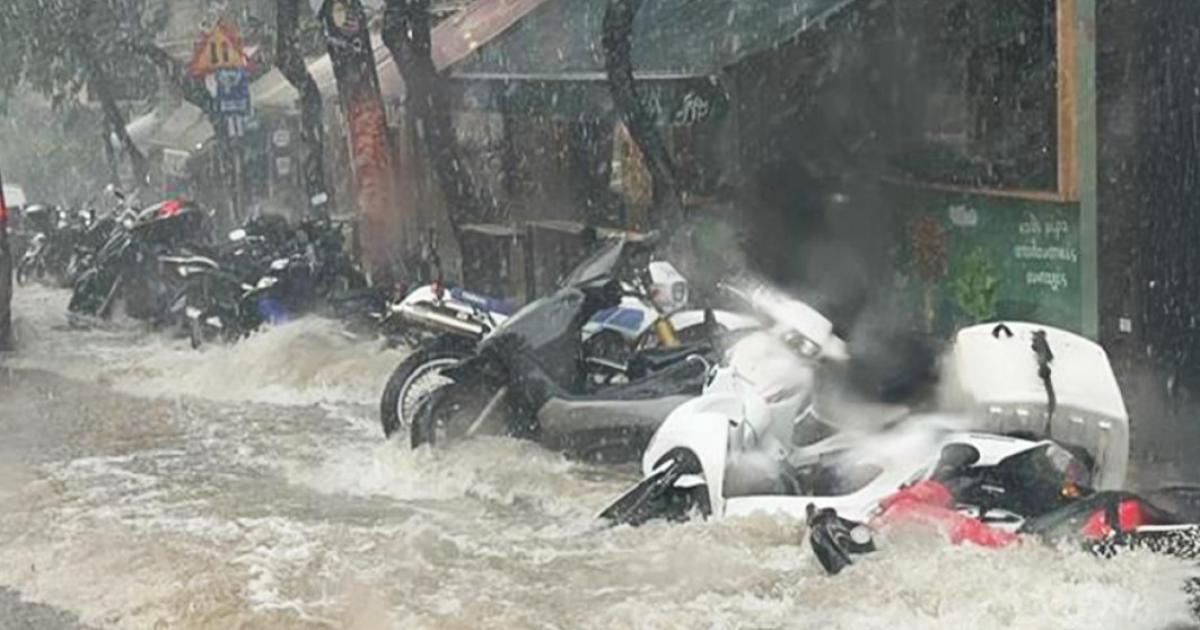 Σε «ποτάμια» μετατράπηκαν οι δρόμοι και στο Κολωνάκι, με τα ορμητικά νερά να παρασύρουν μηχανάκια από τα πεζοδρόμια.