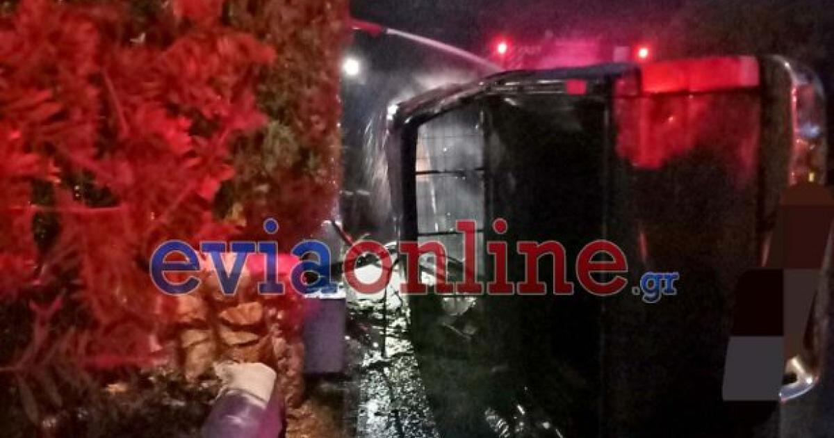 Σύμφωνα με αποκλειστικές πληροφορίες του eviaonline ο οδηγός του ΙΧ για άγνωστους λόγους έχασε τον έλεγχο του αυτοκινήτου στην μεγάλη κατηφόρα που βγαίνει στον κεντρικό δρόμο με αποτέλεσμα να φέρει τούμπες και κατόπιν να συρθεί για πολλά μέτρα στην άσφαλτο. Το ΙΧ τυλίχθηκε στις φλόγες, ενώ η φωτιά επεκτάθηκε ελάχιστα και σε παρακείμενο περίβολο σπιτιού.