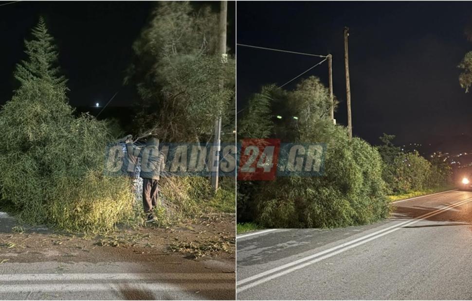 Άγιο είχαν οδηγοί αυτοκινήτων στην περιοχή Μάννα Σύρου, όταν, εξαιτίας των σφοδρών ανέμων που πνέουν στο νησί, ένα μεγάλο δέντρο κατέρρευσε και προσγειώθηκε πάνω στα οχήματά τους.