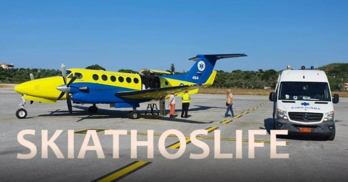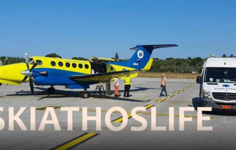 Οι γιατροί από τα αποτελέσματα των εξετάσεων της γυναίκας και σε συνδυασμό με την κατάσταση της υγείας της, έκριναν αναγκαία την αεροδιακομιδή γύρω στις 18:18 από το Διεθνές Αεροδρόμιο Σκιάθου προς το Πανεπιστημιακό Νοσοκομείο Λάρισας.
