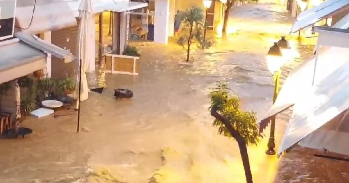 Μεγάλες είναι οι καταστροφές από την επέλαση της κακοκαιρίας «Daniel». Όπως φαίνεται σε βίντεο που δημοσίευσε το Meteo από την Σκιάθο, την οποία σφυροκοπά από το πρωί η κακοκαιρία η στάθμη του νερού είναι έχει ανέβει και έχει μετατρέψει τους δρόμους σε ποτάμια.
