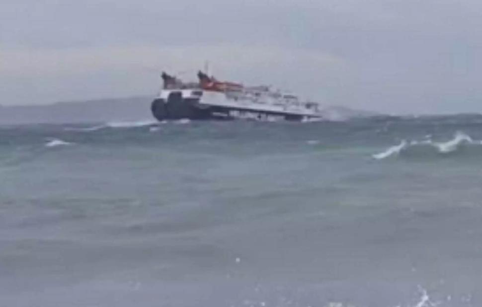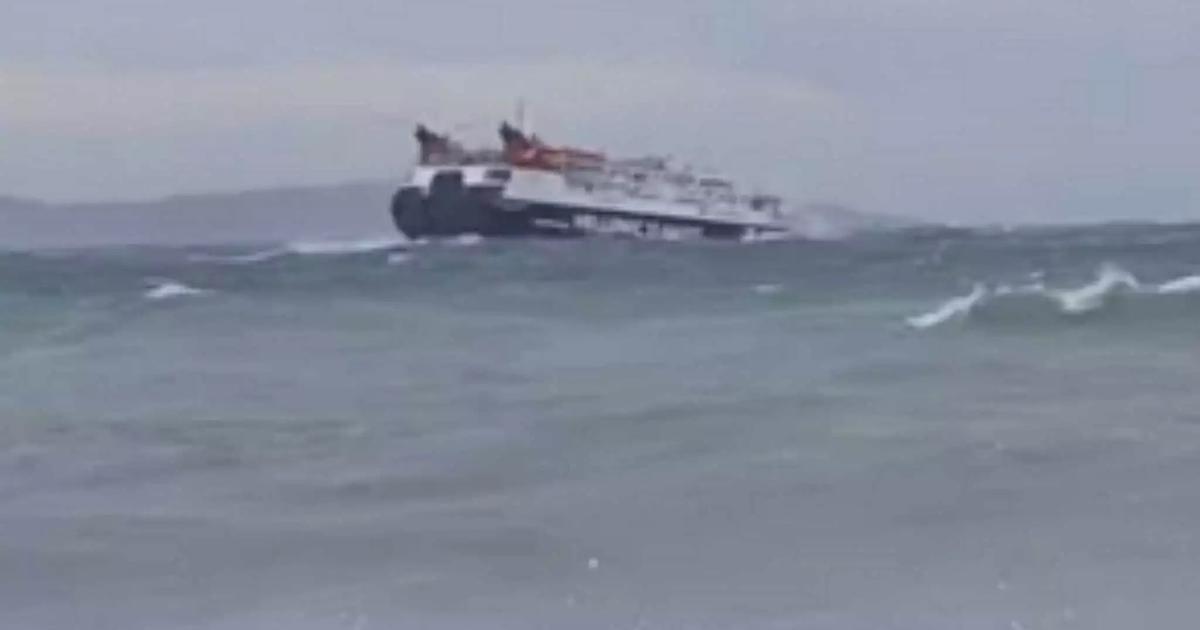 Το πλοίο «Skiathos Express» φαίνεται να παλεύει με τα κύματα έξω από το λιμάνι της Σκοπέλου.
