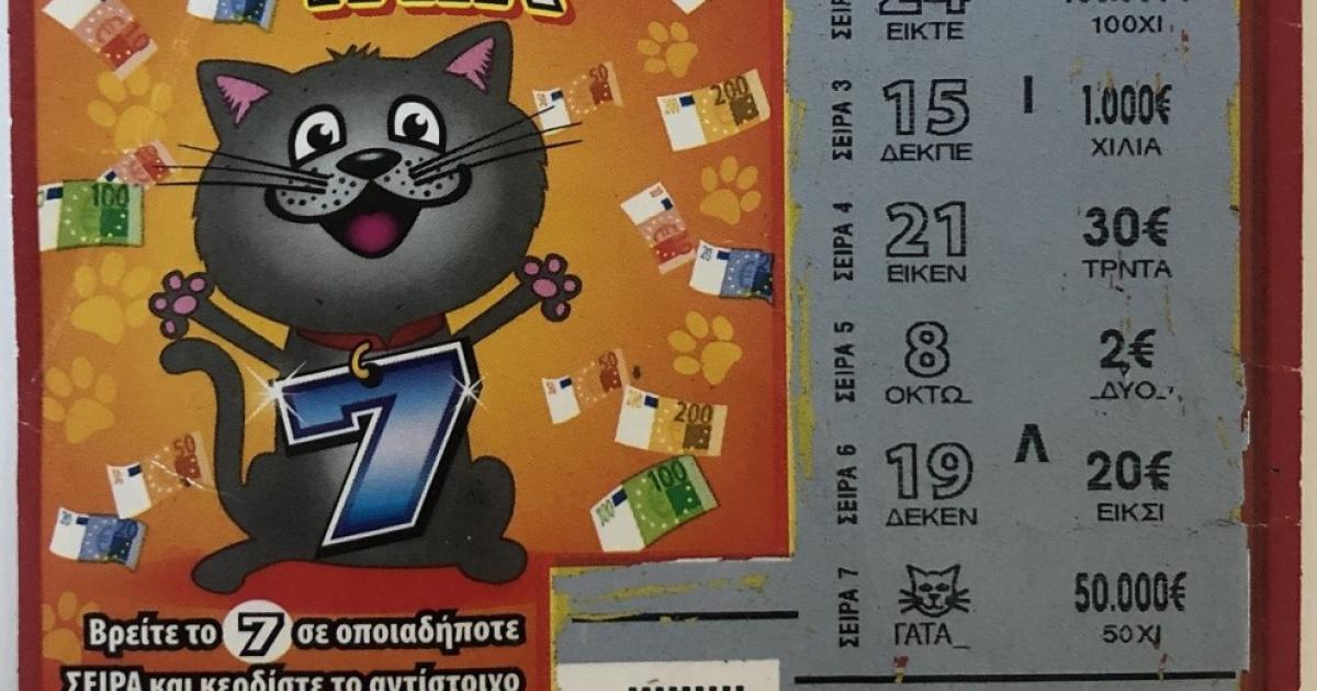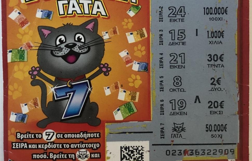 Το μεγάλο έπαθλο του παιχνιδιού «ΕΦΤΑΤΥΧΗ ΓΑΤΑ» κέρδισε ένας νικητής από την Αττική, σκρατσάροντας τον τυχερό λαχνό παρέα με φίλους του. Οι έξι φίλοι αγόρασαν όλοι μαζί μερικά δελτία ΣΚΡΑΤΣ, καθένας διάλεξε στην τύχη από ένα και εκείνος που επέλεξε την «ΕΦΤΑΤΥΧΗ ΓΑΤΑ» είδε να εμφανίζεται μπροστά του το σύμβολο της τυχερής γάτας που κέρδιζε 100.000 ευρώ. Ο τυχερός παίκτης θα δώσει ένα ποσό από τα κέρδη στους φίλους του και με τα υπόλοιπα χρήματα, όπως τους εκμυστηρεύτηκε, θα κάνει ταξίδια με τη μηχανή του, όταν το επιτρέψουν οι συνθήκες.