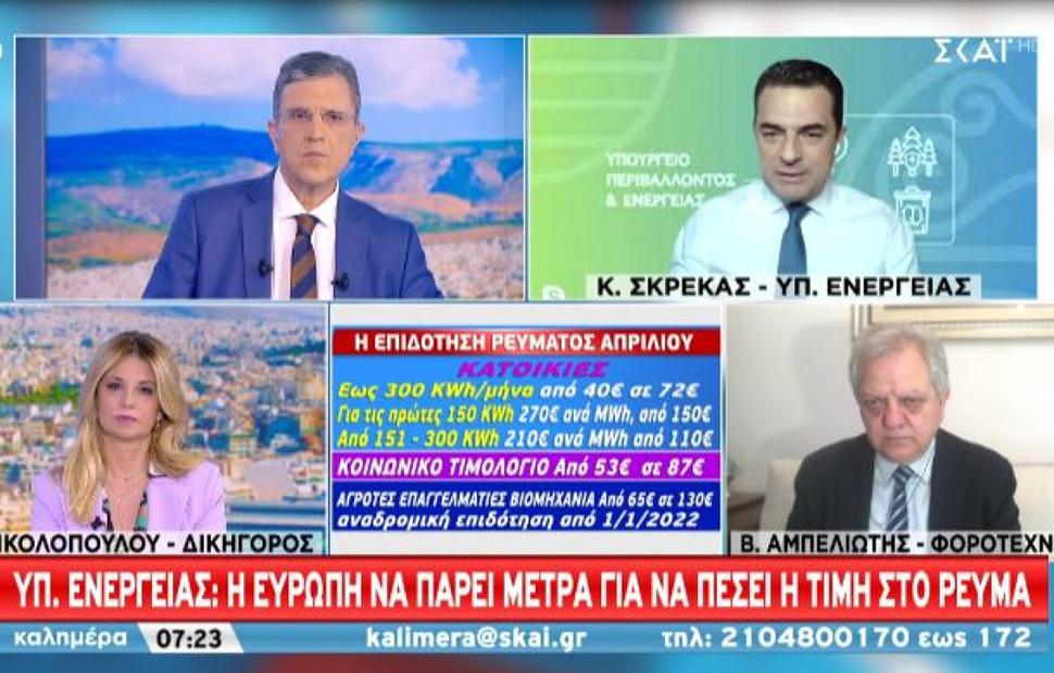 Σχετικά με την επιδότηση στους λογαριασμού ρεύματος, είπε πως όσον αφορά στον μήνα Απρίλιο, αυτή σχεδόν διπλασιάζεται για τα νοικοκυριά και τις επιχειρήσεις