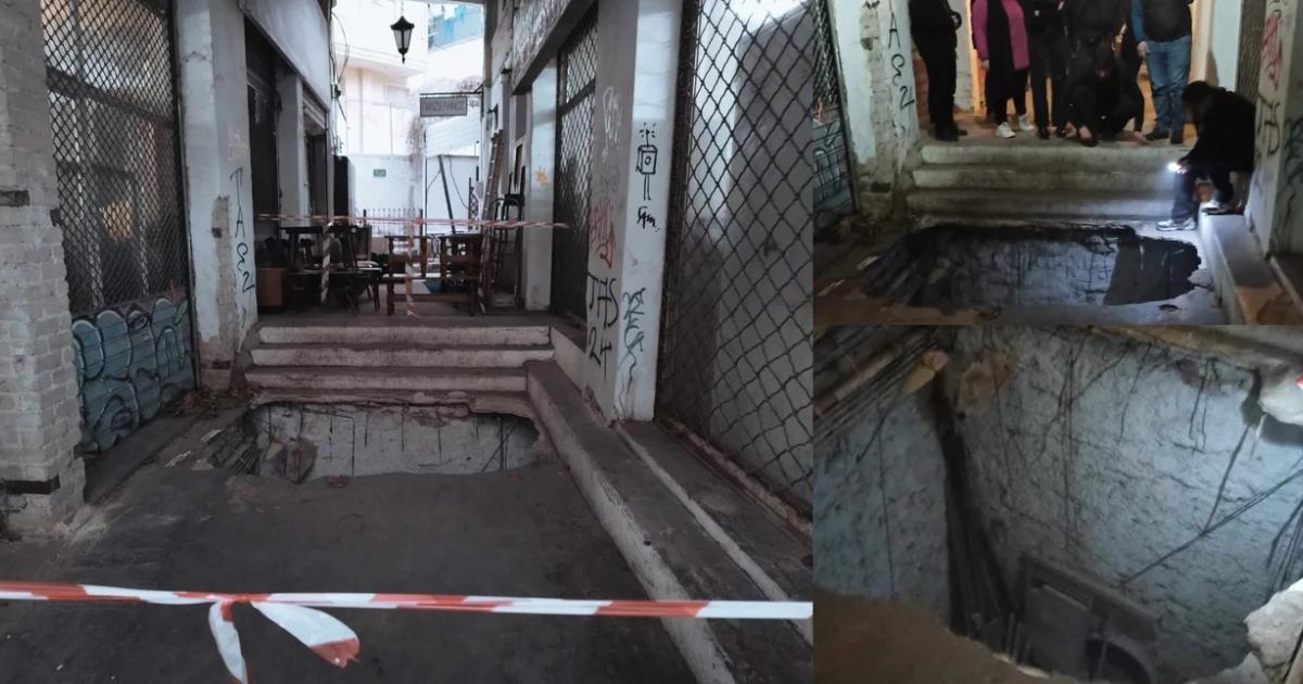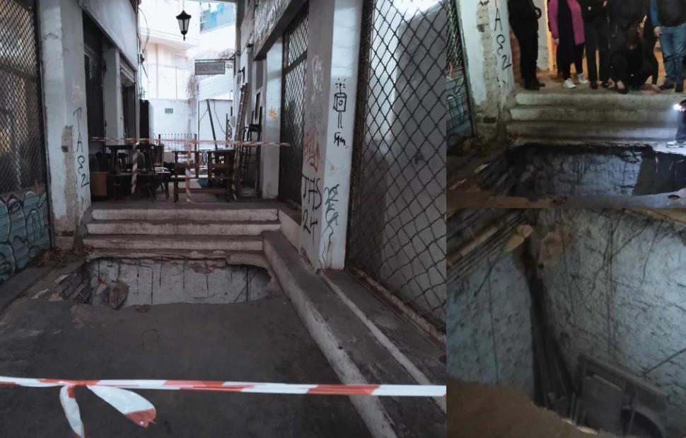 Μία τρύπα περίπου τριών μέτρων άνοιξε στο οδόστρωμα, στη στοά του Μπιτ Παζάρ στη Θεσσαλονίκη, λίγο πριν από τη 1 τα ξημερώματα, με αποτέλεσμα να «καταπιεί» έναν 19χρονο και μία συνομήλική του.