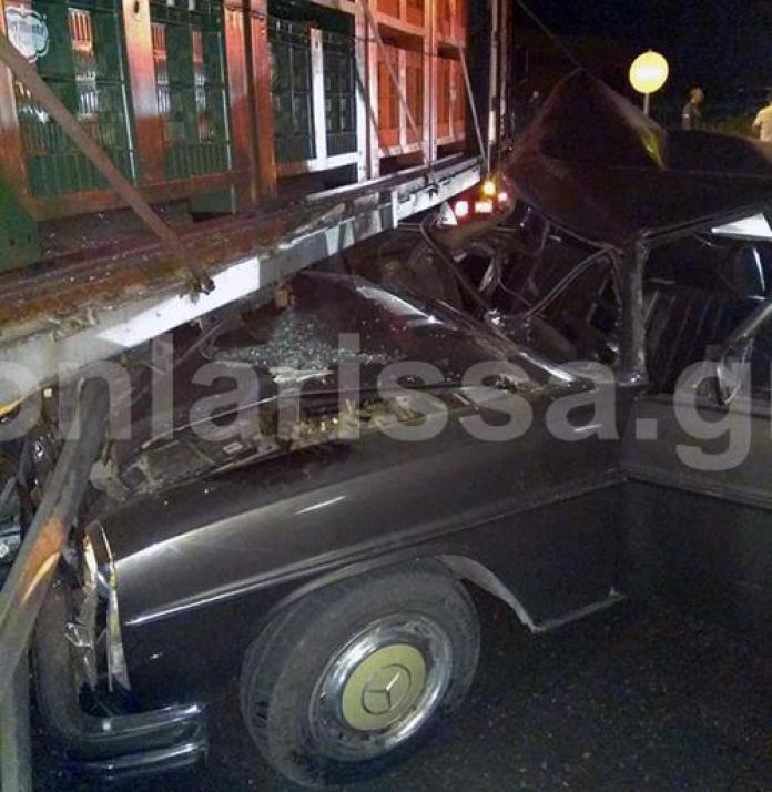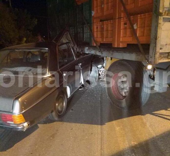 Από θαύμα γλίτωσε οδηγός αυτοκινήτου στη Λάρισα, που χθες το βράδυ συγκρούστηκε με φορτηγό και ουσιαστικά σφήνωσε κάτω από το βαρύ όχημα.