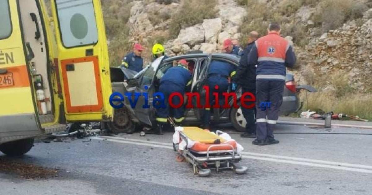 Εύβοια: Μετωπική σύγκρουση δύο Ι.Χ. με εγκλωβισμό 3 ατόμων