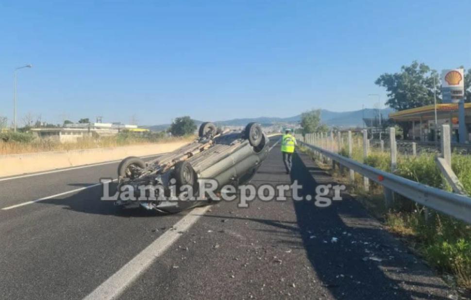 Σοβαρό τροχαίο ατύχημα συνέβη στον 210ο χλμ. της Εθνικής Οδού λίγο πριν από την έξοδο για Λαμία. Αυτοκίνητο ανετράπη στη μέση του δρόμου γύρω στις 8 το πρωί.