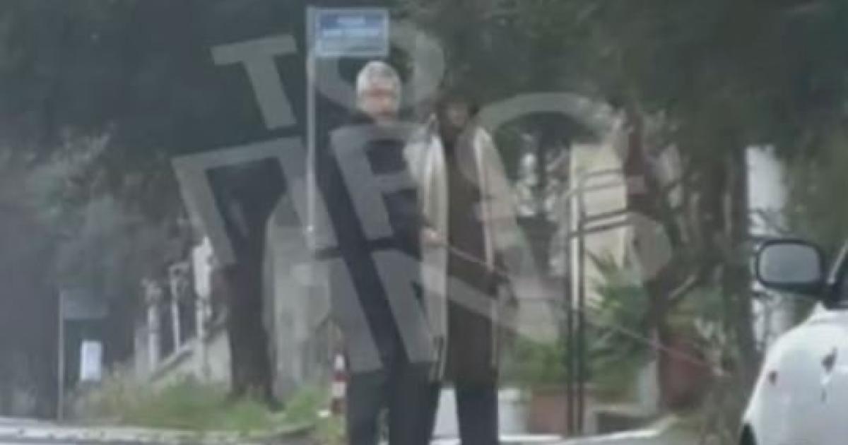 Ο πρώην παρουσιαστής του «Ράδιο Αρβύλα» απαθανατίστηκε κοντά στο σπίτι του στις 09:30 το πρωί να βγάζει βόλτα τον σκύλο του πιασμένος χέρι-χέρι με τη σύζυγό του.